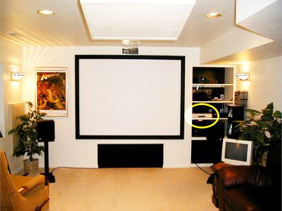 of basement home theater. You can see the silver Skyworth on the equipment